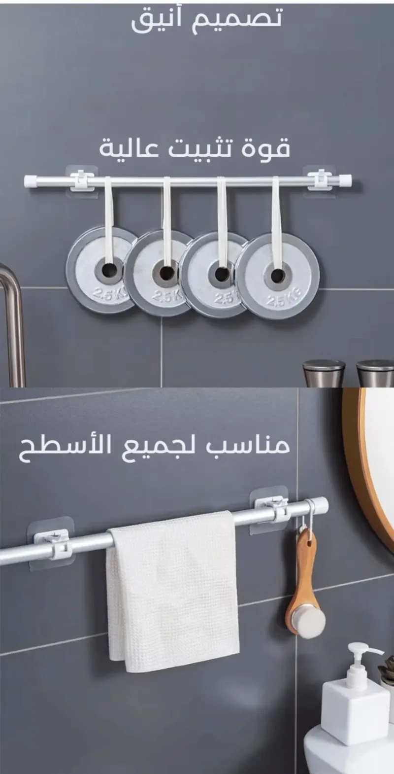 تعدد الاستخدامات:* مثالي لتعليق المماسح، المناشف، الأدوات المنزلية، وأشياء أخرى كثيرة.